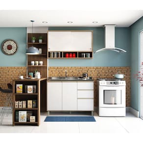 Cozinha completa com 4 módulos pensados para compor seu ambiente aproveitando o melhor do espaço disponível. A Bancada Mesa Gourmet pode ser utilizada como divisor de ambientes, mesa para refeições e espaço para momentos de lazer e descontração. A Cozinha fica completa com o painel 3 prateleiras, Armário Aéreo Basculante 120 cm com 2 portas de correr e Balcão de Pia 120 cm para manter tudo bem organizado. Os módulos são montados individualmente e permite a instalação da forma que melhor se adeque ao seu espaço. Cozinha Composta por:1 – Bancada Mesa Gourmet 150cm Suprema1 – Painel 3 Prateleiras 54,5cm Suprema1 – Armário Aéreo 2 Portas de Correr com Nichos 120cm Mel1 – Balcão de Pia 2 Portas 3 Gavetas 120 cm MelCaracterísticas do Painel de Cozinha 3 Prateleiras Suprema Luciane MóveisEstrutura em MDP 15mm de espessuraAcabamento em BPPrateleiras: 3 em MDP 25mm de espessuraDimensões Altura: 123cmLargura: 54,2cmProfundidade: 16,5cm Peso: 11,1 KgCaracterísticas do Balcão de Cozinha Para Pia Sem Tampo 120 cm 2 Portas de abrir 3 Gavetas Mel Luciane MóveisCorpo/Caixaria: MDP 15mm com Acabamento Vanilla UV TouchFrontais: MDP 15mm com Acabamento Graff UV BrilhoFrontais: MDP 15mm com Acabamento Branc LacaCorrediças Telescópicas: Abertura total das gavetasDobradiças: Metálicas Ø26mmPuxadores: Alumínio Gola - InoxPortas: 2Gavetas: 3Prateleiras: 1Pés: P S - ChampagneTampo: NãoDimensões do produtoAltura: 87 cmLargura: 120 cmProfundidade: 51,5 cmPeso: 50,7 kgCaracterísticas do Armário Aéreo 120 cm 2 Portas de Correr e Nicho Inferior Mel Luciane MóveisCorpo/Caixaria: MDP 15mm com Acabamento Vanilla UV TouchFrontais: MDP 15mm com Acabamento Graff UV BrilhoFrontais: MDP 15mm com Acabamento Branc LacaDobradiças: Metálicas Ø26mmPuxadores: Alumínio Gola - InoxPortas: 2 (de correr)Kit RoldanasPrateleiras: 1Nicho: Sim Dimensões do produtoAltura: 73 cmLargura: 120 cmProfundidade: 31,5 cmPeso: 31,7 kgCaracterísticas da Bancada Mesa Gourmet para Cozinha 150cm X 97cm com 3 Prateleiras Suprema Luciane MóveisEstrutura em MDP 25mm de espessuraTampo em MDP 25mm de espessuraAcabamento em BPPrateleiras: 3Dimensões Altura: 97cmLargura: 150cmProfundidade: 54,5cm Peso: 41 KgGarantia do Fornecedor: 3 meses contra defeito de fabricaçãoInformações complementares:Fique de olho: siga sempre as orientações do fabricante e utilize seu produto de acordo com o manual. A empresa não se responsabiliza pelo mau uso do produto, o que pode causar perda da garantia.?Certifique se que seus dados estejam atualizados, como endereço e um telefone válido.A entrega será realizada no térreo, sendo assim em prédios o deslocamento da mercadoria, subir escadas, elevadores ou transporte por guincho para apartamentos fica sob responsabilidade do comprador.Todas as nossas entregas são realizadas em horário comercial, não sendo possível fazer agendamento, sugerimos acompanhar o rastreio do pedido e ter alguém para receber no endereço indicado.Não nos encarregamos por montagens, desmontagens e outras instalações, serão de responsabilidade do comprador.