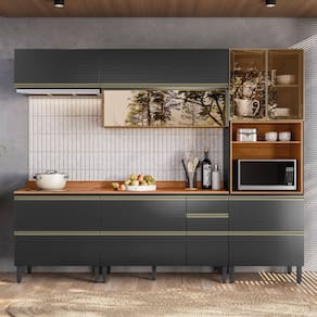 Em um lar, a cozinha é mais do que um espaço para cozinhar — é o coração das memórias, onde aromas e risadas se entrelaçam. Nossa nova linha de cozinhas moduladas de alto padrão, produzida em MDF com acabamento Textura Prime TX, foi pensada para transformar esse espaço em um cenário de sofisticação e praticidade. Acabamento da Prateleira: Pintura Escala de Brilho da Prateleira: Fosco Acabamento da Gaveta: Pintura Texturizada UV Escala de Brilho da Gaveta: Fosco Material do Puxador da Gaveta: Metal Acabamento da Porta: Pintura Texturizada UV Escala de Brilho da Porta: Fosco Material do Puxador da Porta: Metal Acabamento dos Pés: Pintura Acompanha Rodapé Decorativo: Não Acompanha Tampo: Sim Altura dos Pés: 17 cm Altura Máxima dos Pés: 17.0000 Ambiente Principal: Cozinha Balcão Suporta Pia: Sim codigo_ean: 7900288180315 Complexidade da Montagem: Alta: deve ser montado por um montador especializado Cor: Nogueira/Carbono Prime Cor do Produto: Nogueira/Carbono Prime Cor Flex: Não Cor Interna: Nogueira Escala de Brilho: Fosco Espessura do Material da Estrutura: 15 mm Espessura do Tampo: 20 mm Gaveta com Chave: Não Informações Complementares: As cores do produto podem sofrer variações de tonalidade de acordo com as configurações do seu dispositivo. Imagens meramente ilustrativas. Itens para decorar o produto e o ambiente não acompanham o produto. Caixa revestida por plástico termoencohível e p Itens Inclusos: 1 Cozinha Completa, Ferragens e Manual de Montagem Linha ou Coleção: Proença Manual de Especificação Técnica: https://product-hub-prd.madeiramadeira.com.br/370948110/documents/5952998e-3d2e-4ac3-953b-2d92724b4eb53014128302817507688348275.pdf Manual de Montagem e Instalação: https://product-hub-prd.madeiramadeira.com.br/370948110/documents/af423a1e-1ac8-4f07-aca6-e766d8aede733014126302817507688155426.pdf Marca: Demóbile Material da Corrediça: Alumínio Material da Dobradiça/Corrediça da Porta: Metálica Material da Gaveta: MDF Material da Porta: MDF Material da Prateleira: MDF Material do Fundo: HDF Material do Tampo: MDF Material dos Pés: Polipropileno Medida de cada item (A x L x P): Armário Aéreo (36 x 80 x 52) / Armário Aéreo (72 x 120 x 52) / Paneleiro (218,5 x 70 x 52) / Balcão Pia (84 x 119,4 x 52) / Tampo Balcão Pia (9 x 119,5 x 52) / Balcão (93 x 80,2 x 52) modular: Sim Montagem Flex: Não Necessita Montagem: Sim O Balcão Acompanha Pia: Não Origem do Produto: Nacional Pés Reguláveis: Sim Peso: 199,3 kg Peso Máximo por Gaveta: 10 kg Peso Máximo por Prateleira: 10 kg Possui Pés: 13 Possui Portas: Sim Possui Prateleiras: Sim Possui recorte para Cooktop: Não Possui Rodízio: Não Possui Vidro: Sim Produto Montado: Sim Recomendações de Uso, Manutenção e Limpeza: Higienizar com flanela limpa e seca. Sapatas Niveladoras: Não Sistema de Montagem: Parafusos e cavilhas. Suporta Até (kg): 190 kg Tamanho Indicado da Pia: 120CM Tipo de Corrediça da Gaveta: Metálica Telescópica Tipo de Dobradiça da Porta: Soft close Tipo de Dobradiça/Corrediça da Porta: Soft Close Tipo de Puxador da Gaveta: Externo Tipo de Puxador da Porta: Externo
