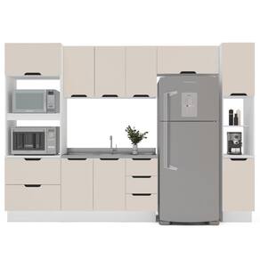 A cozinha 5 peças Meena da Politorno Móveis é a solução ideal para quem busca praticidade e elegância. Com 224,5 cm de altura, 310 cm de largura e 52 cm de profundidade, ela conta com 1 balcão com 3 gavetas e 2 portas, 1 torre quente, 1 paneleiro, 3 armários aéreos e 1 armário aéreo basculante, oferecendo amplo espaço para organizar utensílios, eletrodomésticos e mantimentos. O design moderno e sofisticado, aliado a materiais de alta qualidade, proporciona um ambiente funcional e estiloso. As corrediças telescópicas garantem abertura suave das gavetas, enquanto o acabamento em pintura UV oferece durabilidade e resistência. O tampo não acompanha o produto, permitindo personalização conforme sua necessidade. Possui rodapé.