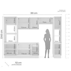 Medida de cada item (A x L x P): Balcão 81cm x 120cm x 50,5 cm; Aéreo 66 cm x 120 cm x 30,5 cm; Basculante 36 cm x 80 cm x 30,5xm; Paneleiro 224,5cm x 40cm x 52cm; Torre Quente 224,5cm x 70cm x 52cm