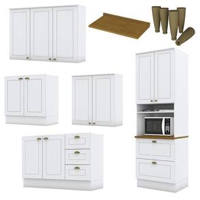 Cozinha Completa 5 Peças Americana Branco Com Torre Quente E Tampo Nature - Móveis Henn Branco