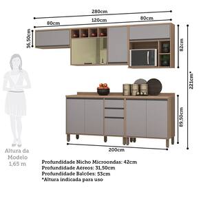 Ambiente composto por: -A x L x P- - 1 Armário Aéreo 80 cm 2 Portas de abrir 1 Prateleira -73 x 80 x 31,5- - 1 Armário Aéreo 120cm 1 Porta de abrir 1 Porta Basculante Vidro Reflecta e Nicho -73 x 120 x 31,5- - 1 Armário Aéreo 80 cm 1 Porta Basculante Nicho Micro Conjugado e Nicho Lateral -82 x 80 x 42- - 1 Balcão de Cozinha Para Pia Sem Tampo 120 cm 2 Portas de abrir 3 Gavetas -87 x 120 x 51,5- - 1 Balcão de Cozinha com Tampo 80 cm 2 Portas de abrir 1 Prateleira -89,5 x 80 x 53- - 1 Tampo para Balcão 120 cm MDP -2,5 x 120 x 53-