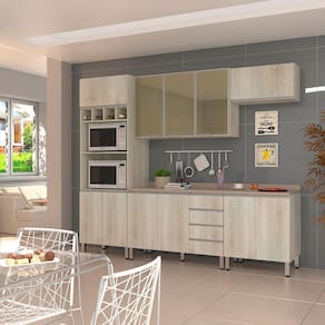 Uma cozinha modulada completa para deixar seu ambiente super aconchegante e requintado. Cuidadosamente pensadas para sua organização, a Cozinha Lis conta com acessórios requintados como puxadores em perfil alumínio tipo gola, corrediças metálicas telescópicas para abertura total das gavetas e dobradiças slow motion permitindo o fechamento mais suave das portas.