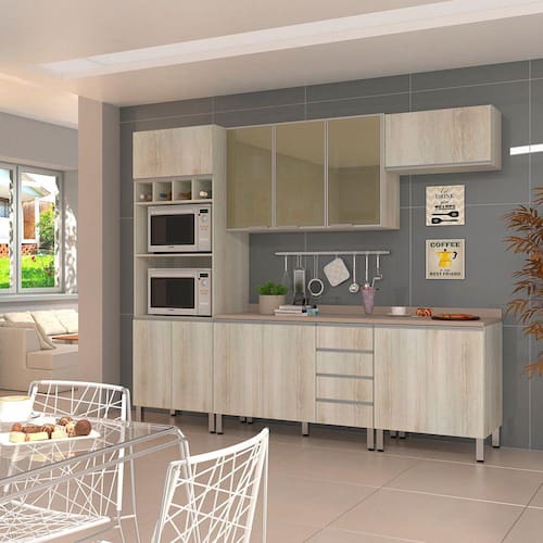 - Armário de Cozinha 120 cm 3 Portas Vidro Reflecta Bronze Lis Luciane Móveis