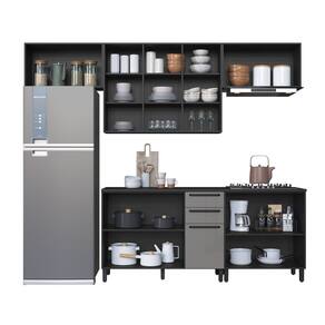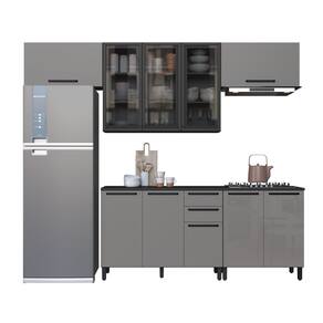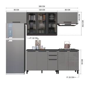 Conjunto funcional e moderno, composto por armário para geladeira, armário aéreo de 1,20 m com portas de vidro, balcão de 1,20 m com tampo, segundo armário para geladeira e balcão adicional de 80 cm. Desenvolvida para otimizar o espaço da cozinha, oferece amplo armazenamento para utensílios, mantimentos e eletrodomésticos. Com design elegante, portas de vidro e acabamento de qualidade, garante organização, praticidade e estilo no dia a dia, sendo ideal para cozinhas compactas e médias. Acabamento da Prateleira: Pintura Texturizada UV Escala de Brilho da Prateleira: Fosco Acabamento da Gaveta: Pintura Texturizada UV Escala de Brilho da Gaveta: Fosco Material do Puxador da Gaveta: Alumínio Acabamento da Porta: Pintura Texturizada UV Escala de Brilho da Porta: Fosco Material do Puxador da Porta: Alumínio Acompanha Rodapé Decorativo: Não Acompanha Tampo: Sim Altura dos Pés: 14 cm Altura Máxima dos Pés: 14.0000 Ambiente Principal: Cozinha Balcão Suporta Pia: Sim codigo_ean: 7900288319081 Complexidade da Montagem: Alta: deve ser montado por um montador especializado Cor: Cinza/Titanio Cor do Produto: Cinza/Titanio Cor Interna: Cinza/Titanio Escala de Brilho: Acetinado Gaveta com Chave: Não Informações Complementares: suporta ate 149 kg espalhados Itens Inclusos: 1 Cozinha Completa, Manual de Montagem e Kit Ferragens Linha ou Coleção: Diamante Manual de Montagem e Instalação: https://product-hub-prd.madeiramadeira.com.br/895635721/documents/3edb48c4-f50a-4b1f-8e50-655b0913cee1337094074617696321676945.pdf Marca: Indekes Material da Corrediça: Alumínio Material da Dobradiça/Corrediça da Porta: Metálica Material da Gaveta: MDP Material da Porta: MDP/Vidro Material da Prateleira: MDP Material do Tampo: MDP Material dos Pés: MDP Medida de cada item (A x L x P): Armario Geladeira 1: 45,2X80X32 Armario: 90,5X120X32 Armario Geladeira 2: 45,2X80X32 Balcão: 90,5X120X53 modular: Não Necessita Montagem: Sim O Balcão Acompanha Pia: Não Origem do Produto: Nacional Pés Reguláveis: Sim Peso: 143,7 kg Peso Máximo por Gaveta: 3 kg Peso Máximo por Prateleira: 5 kg Possui Pés: 09 Possui Portas: Sim Possui Prateleiras: Sim Possui recorte para Cooktop: Não Possui Rodízio: Não Possui Vidro: Sim Produto Montado: Sim Recomendações de Uso, Manutenção e Limpeza: Não limpar com álcool ou qualquer outro produto quimico. Utilize somente pano seco ou levemente umedecido. Sapatas Niveladoras: Não Sistema de Montagem: Cavilhas de madeira e parafusos tipo "fixer" especialmente desenvolvido para madeira. Suporta Até (kg): 40 kg Tamanho Indicado da Pia: 120X53 Tipo de Corrediça da Gaveta: Metálica Telescópica Tipo de Dobradiça da Porta: Soft close Tipo de Puxador da Gaveta: Externo Tipo de Puxador da Porta: Externo