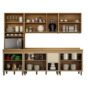 Amplo Espaço Interno: Composta por 13 portas e 2 gavetas, ideal para organizar eletrodomésticos, louças e mantimentos.