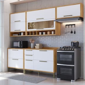 Medida Geral do Ambiente (A x L x P): 225 x 280 x 47 Acabamento da Prateleira: Pintura Escala de Brilho da Prateleira: Semi-Brilho Acabamento da Gaveta: Pintura Escala de Brilho da Gaveta: Brilhante Material do Puxador da Gaveta: Alumínio Acabamento da Porta: Pintura Escala de Brilho da Porta: Brilhante Material do Puxador da Porta: Alumínio Acompanha Tampo: Sim Altura dos Pés: 17 cm Altura Máxima dos Pés: 17.0000 Ambiente Principal: Cozinha Balcão Suporta Pia: Não codigo_ean: 7900288167316 Complexidade da Montagem: Alta: deve ser montado por um montador especializado Cor: Amêndoa/Branco Brilho Cor do Produto: Amêndoa/Branco Brilho Cor Flex: Não Cor Interna: Amêndoa Escala de Brilho: Semi-Brilho Gaveta com Chave: Não Informações Complementares: Detalhes em Vidro Reflecta. Portas basculantes com pistão à gás. Acompanha tampo. Itens Inclusos: 1 Cozinha, Manual de Montagem e Kit Ferragens Linha ou Coleção: Vicenza Manual de Montagem e Instalação: https://product-hub-prd.madeiramadeira.com.br/278375655/documents/3c8b3dc9-e4bf-454b-b467-ef578a93e80d2963019366617485383892742.pdf Marca: Espresso Móveis Material da Corrediça: Metálica Material da Dobradiça/Corrediça da Porta: Metálica Material da Gaveta: MDF Material da Porta: MDF Material da Prateleira: MDF Material do Fundo: HDF Material do Tampo: MDF Material dos Pés: Plástico Medida de cada item (A x L x P): Armário aéreo 80 Duplo (90cm x 80cm x 33,50cm) Balcão 80 1P1G (90cm x 80cm x 47cm) Armário aéreo 120 (90cm x 120cm x 33,50cm) Balcão 120 2P3G (90cm x 120cm x 47cm) Armário aéreo 80 Gel (40cm x 80cm x 33,50cm) modular: Sim Necessita Montagem: Sim O Balcão Acompanha Pia: Não Origem do Produto: Nacional Pés Reguláveis: Sim Peso: 156,39 kg Peso Máximo por Gaveta: 5 kg Peso Máximo por Prateleira: 5 kg Possui Pés: 09 Possui Porta com Vidro: Sim Possui Portas: Sim Possui Prateleiras: Sim Possui recorte para Cooktop: Não Possui Rodízio: Não Possui Vidro: Sim Produto Montado: Sim Recomendações de Uso, Manutenção e Limpeza: Para limpeza utilize somente pano limpo e macio, ligeiramente umidecido em água (apenas o bastante para remover a poeira), seguido de um pano seco. Sapatas Niveladoras: Sim Sistema de Montagem: Parafusos altoatarraxantes, conjuntos minifix, cavilha madeira, acessórios plásticos/metálicos Suporta Até (kg): 130 kg Tamanho Indicado da Pia: Não é recomendado o uso de pia. Tipo de Corrediça da Gaveta: Metálica Telescópica Tipo de Dobradiça da Porta: Simples Tipo de Puxador da Gaveta: Externo Tipo de Puxador da Porta: Externo