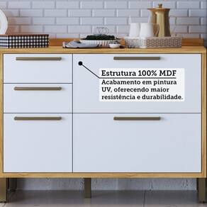 Sua estrutura é em 100% MDF, garantindo durabilidade e resistência, com um acabamento impecável que valoriza cada detalhe da sua cozinha. Possui amplo espaço dividido em 8 portas basculantes e 4 gavetas que deslizam por corrediças telescópicas, oferecendo movimentos suaves e silenciosos. Tudo projetado para oferecer máxima funcionalidade e um toque de elegância. Invista na praticidade e elegância que você merece!