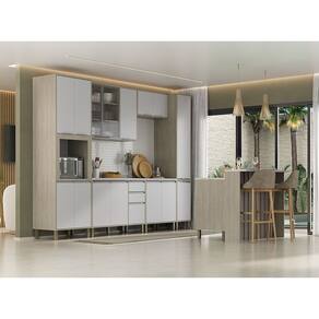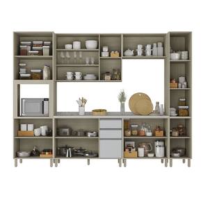 A Cozinha Art foi desenvolvido aliando beleza e praticidade ao seu ambiente. As portas embutidas remetem ao planejado, ainda conta com acessorios requintados como dobradicas em 35mm com amortecimento Slowmotion incorporado para fechamento suave de portas, puxadores tipo gola em perfil aluminio na cor prata e pes em PS -poliestireno- na cor champagne. Possui gavetas com corredicas metalicas telescopicas em tres estagios, para abertura total. Perfeito para sua cozinha.