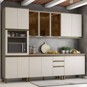 Para mais informações, acesse nossa Central de . Tonalidade: Multicolorido | Produto: Cozinha Modulada | Fabricante: Henn | Tipo de móveis de cozinha: Armário Cor: Duna/Cristal