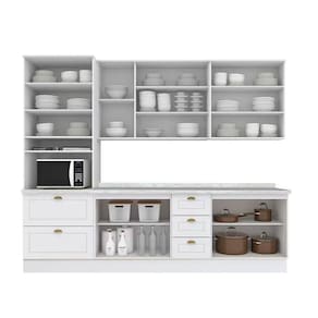 - Paneleiro de Cozinha Americana c/ 2 Portas 1 Nicho p/ forno e 2 Gavetas 71x220cm Branco/Calcare - Henn - 1 unidades Dimensões: Alt: 54cm x Larg221cm x Comp/Profund:221cm