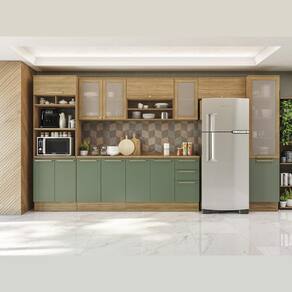 Armário de Cozinha Completa 400cm com 7 Peças Kappesberg Botânic Nogueira/Verde Oliva - CB861