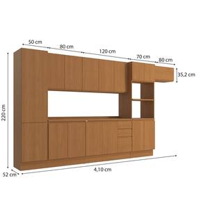 Medida de cada item (A x L x P): Aéreo: 70,4 x 120 x 37,5 / Aéreo: 35,2 x 80 x 37,5 / Aéreo: 70,4 x 80 x 37,5 / Balcão: 88 x 120 x 52 / Balcão: 88 x 80 x 52/ Kit Forno: 220 x 70 x 52 / Paneleiro: 220 x 50 x 52 / Tampo: 2,5 x 120 x 52 / Tampo: 2,5 x 80 x 52