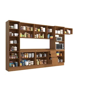 Beleza e qualidade com o Kit CB1271 da Cozinha Ciela da Kappesberg. Produzido com corpo em MDP de 1,5 cm e portas em MDF de 1,8 cm , ele garante robustez e um acabamento perfeito. Composto por 7 peças mais tampos, ele possui até sete camadas de pintura e acabamento touch na cor canela, com a textura dos veios da madeira, perfeita para ambientes clássicos e aconchegantes. E para um melhor acabamento, ele conta com rodapés, mas acompanha as ferragens para ser montado suspenso. Com amplo espaço, o paneleiro e kit forno permitem otimizar espaço na vertical e organizar louças e mantimentos. O destaque fica para as dobradiças com amortecimento nas portas e corrediças telescópicas nas gavetas. Além disso, os puxadores cava embutidos completam a beleza e o design do produto.