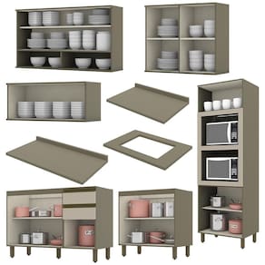 Tonalidade: Multicolorido | Produto: Cozinha Modulada | Fabricante: Henn | Tipo de móveis de cozinha: Armário Cor: Duna/Cristal