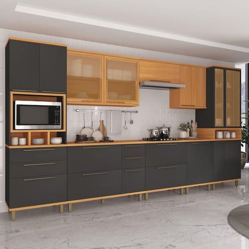 A cozinha Madri da Indekes possuí base e tampos em MDP 25mm e o restante da estrutura em chapas de MDP 15mm, o que garante sua qualidade e durabilidade. Possuí puxadores em alumínio que são muito mais resistentes e pés com regulagem que permitem melhor ajuste de altura e nivelamento. Com design inovador e moderno, a cozinha foi feita para você que está procurando aliar a funcionalidade com a elegância, com um móvel que exalta qualquer ambiente. Acabamento da Prateleira: Pintura Escala de Brilho da Prateleira: Fosco Acabamento da Gaveta: Pintura Escala de Brilho da Gaveta: Fosco Material do Puxador da Gaveta: Alumínio Acabamento da Porta: Pintura Escala de Brilho da Porta: Fosco Material do Puxador da Porta: Alumínio Acompanha Tampo: Não Altura dos Pés: cm Ambiente Principal: Cozinha codigo_ean: 7909903311981 Complexidade da Montagem: Alta: deve ser montado por um montador especializado Cor: freijo/cinza Cor do Produto: Freijó/Cinza Cor Interna: Cinza Escala de Brilho: Fosco Gaveta com Chave: Não Itens Inclusos: 1 Torre Quente 1 Forno 70 Cm, 1 Armário 1,20 Cm, 1 Balcão 1,20 Cm Sem Tampo, 1 Armário basculante 80 Cm, 1 Balcão 80 Cm Com Tampo, 1 Armário 60 Cm, 1 Balcão 60 Cm, 1 Paneleiro 70 Cm , Kit Ferragens e Manual de Montagem Linha ou Coleção: Madri Manual de Montagem e Instalação: https://product-hub-prd.madeiramadeira.com.br/843790/documents/ee5fb7de-faca-4291-a22a-74b576b4a3c812792646154123manual.pdf Material da Dobradiça/Corrediça da Porta: Metálica Material da Gaveta: MDP Material da Porta: MDP Material da Prateleira: MDP Material do Fundo: MDP Material dos Pés: Plástico Medida de cada item (A x L x P): Torre Quente: 226x70x53cm | Armário 120cm: 77x120x32,5cm | Balcão 120cm Com Tampo: 93x120x53cm | Armário Basculante: 38,5x80x32,5cm | Balcão 80cm: 93x80x53cm | Armário 0,60 Cm: 77x60x32,5cm | Balcão 0,60Cm: 93x60x53cm | Paneleiro: 226x70x53cm Montagem Flex: Não Necessita Montagem: Sim O Balcão Acompanha Pia: Não Origem do Produto: Nacional Pés Reguláveis: Sim Peso: 336,3 kg Peso Máximo por Gaveta: 3 kg Peso Máximo por Prateleira: 5 kg Possui Pés: 21 Possui Portas: Sim Possui Prateleiras: Sim Possui recorte para Cooktop: Não Possui Rodízio: Não Produto Montado: Sim Recomendações de Uso, Manutenção e Limpeza: Não limpar com álcool ou qualquer outro produto quimico. Utilize somente pano seco ou levemente umedecido. Sapatas Niveladoras: Não Sistema de Montagem: Cavilhas de madeira, parafusos tipo "fixer" e sistema minifix especialmente desenvolvido para madeira. Suporta Até (kg): 20 kg Tamanho Indicado da Pia: 120x53cm Tamanho Indicado do Tampo: 120x53 Tipo de Corrediça da Gaveta: Metálica Telescópica Tipo de Dobradiça da Porta: 35 mm Tipo de Puxador da Gaveta: Externo Tipo de Puxador da Porta: Externo