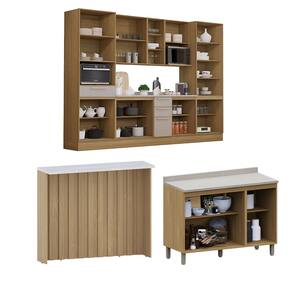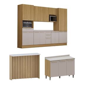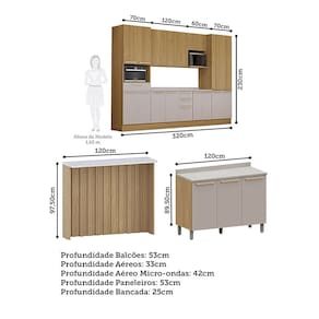Ambiente composto por: - 1 Torre 70cm Nicho Micro-ondas - 1 Balcão Pia 120cm 2 Pts 3 Gav com Tampo - 1 Balcão 60cm 2 Pts com Tampo - 1 Armário Aéreo 120cm 3 Pts - 1 Armário Aéreo 60cm 2 Pts Nicho Micro-ondas - 1 Paneleiro Duplo 70cm - 1 Balcão Pia 120cm 3 Pts com Tampo - 1 Bancada Para Ilha com Tampo