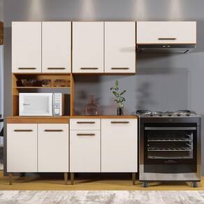 Cozinha Completa 9 Portas Atenas Kaiki Moveis Nature/off White Na hora de mobiliar o seu cômodo de chef você não precisa comprometer a decoração para ter um móvel funcional e que acomode todos aqueles itens essenciais. A Cozinha Atenas não só está preparada para deixar o cômodo com um visual incrível, mas também vai ser a aliada perfeita para armazenar louças, utensílios, alimentos e eletrodomésticos de forma funcional. Já por fora, a peça tem acabamento charmoso com puxadores discretos que ajuda a trazer um toque especial ao ambiente, enquanto as cores versáteis agregam muito à estética dessa peça primorosa. Muito bom gosto para o seu lar-style! Cozinha Completa 9 Portas Atenas Escala de Brilho: Semi-Brilho Origem do Produto: Nacional Ambiente Principal: Cozinha Altura: 211cm Largura: 222,5cm Profundidade: 53cm Peso: 96,4cm Acabamento: Pintura UV Material Principal: MDP Possui Portas: 09 Material da Porta: MDP Acabamento da Porta: Pintura Escala de Brilho da Porta: Semi-Brilho Tipo de Porta: Misto (Bater e Basculante) Tipo de Puxador da porta: Externo Material do Puxador da Porta: MDF Tipo de Dobradiça da Porta: Aço Possui Prateleiras: 04 Material da Prateleira: MDP Acabamento da Prateleira: Pintura Texturizada UV Escala de Brilho da Prateleira: Semi-Brilho Peso Máximo por Prateleira: 10 Possui Gavetas: Não Possui Pés: 08 Altura dos Pés: 17cm Material dos Pés: Plástico Acabamento dos Pés: Pintura Possui Rodízio: Não Pés Reguláveis: Sim Acompanha Tampo: Sim Material do Tampo: MDP O Balcão Acompanha Pia: Não Estilo: Moderno Recomendações de Uso, Manutenção e Limpeza: Recomendamos que a limpeza seja feita apenas com pano umedecido. Sistema de Montagem: Parafusos. Sistema de Montagem: Parafusos. Itens Inclusos: 1 Cozinha e manual de montagem. Quantidade de Peças: 04 Medida de cada item (A x L x P): Torre Quente - 211cm x 67c m x 53cm Balcão - 86cm x 83,5cm x 53cm Aereo 2 Portas - 68cm x 80cm x 30cm Nicho Geladeira = 30cm x 75,5cm x 28,5cm