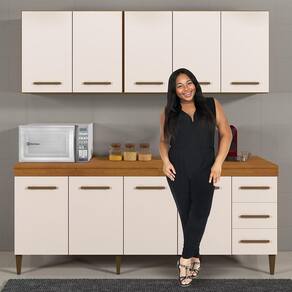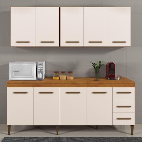 Na hora de mobiliar o seu comodo de chef voce nao precisa comprometer a decoracao para ter um movel funcional e que acomode todos aqueles itens essenciais. A Cozinha Atenas nao so esta preparada para deixar o comodo com um visual incrivel, mas tambem vai ser a aliada perfeita para armazenar loucas, utensilios, alimentos e eletrodomesticos de forma funcional. Ja por fora, a peca tem acabamento charmoso com puxadores discretos que ajuda a trazer um toque especial ao ambiente, enquanto as cores versateis agregam muito a estetica dessa peca primorosa. Muito bom gosto para o seu lar-style!