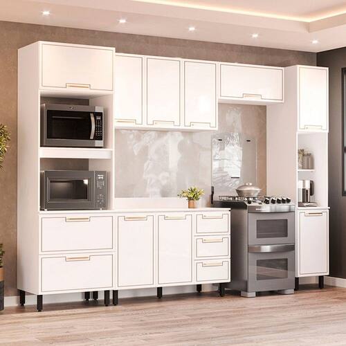 O(a) Cozinha Completa Amara 10 Portas 4 Gavetas 40250092 Branco - Politorno é produzido em MDF e MDP na escala de brilho Semi-Fosco, e possui um grau de dificuldade de montagem: Médio.