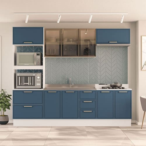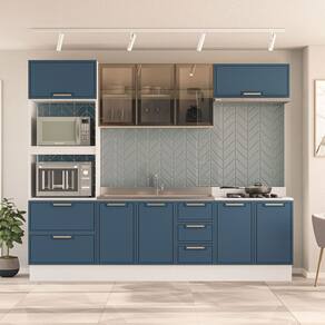 O(a) Cozinha Completa Amara 10 Portas 4 Gavetas com Vidro 40250784 Azul/Branco - Politorno é produzido em MDF e MDP na escala de brilho Semi-Brilho, e possui um grau de dificuldade de montagem: Médio.