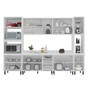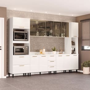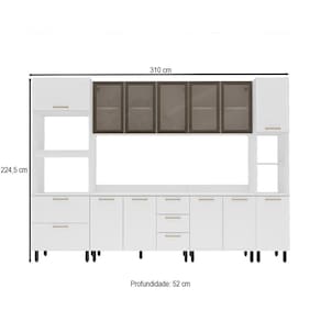 O(a) Cozinha Completa Amara 13 Portas 4 Gavetas com Vidro 40250775 Branco - Politorno é produzido em MDF e MDP na escala de brilho Semi-Brilho, e possui um grau de dificuldade de montagem: Médio.