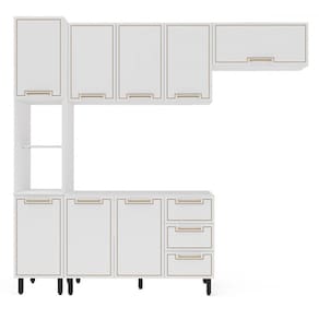 O(a) Cozinha Completa Amara 8 Portas 3 Gavetas 40250078 Branco - Politorno é produzido em MDF e MDP na escala de brilho Semi-Fosco, e possui um grau de dificuldade de montagem: Médio.