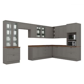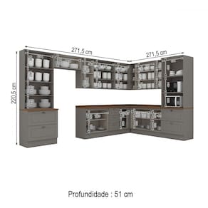 O(a) Cozinha Completa Americana 18 Portas 7 Gavetas com Vidro 100% Mdf Cinza/Natural - Henn é produzido em 100% MDF na escala de brilho Fosco, e possui um grau de dificuldade de montagem: Médio.