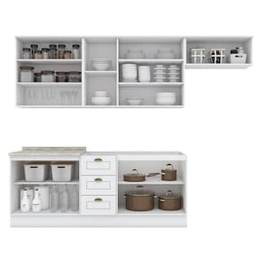 O ambiente é composto por (L x A x P): 1x C363-05 Aéreo 3 Portas com Vidro 120cm: 120 x 83 x 32,5 cm 1x C353-05 Balcão Pia 3 Gavetas e 2 Portas: 120 x 82 x 51 cm (Não acompanha cuba e tampo) 1x C356-05 Aéreo de 2 Portas 80cm: 80 x 83 x 32,5 cm 1x C355-05 Balcão 2 Portas 80cm: 80 x 82 x 51 cm 1x C354-05 Aéreo com Porta basculante: 80 x 34 x 32,5 cm 1x C904-114 Tampo para Balcão 80cm: 80 x 2,5 x 53,5 cm