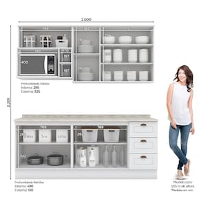 Para mais informações, acesse nossa Central de . Tonalidade: Branco | Produto: Cozinha Modulada | Tipo de móveis de cozinha: Armário Cor: Branco