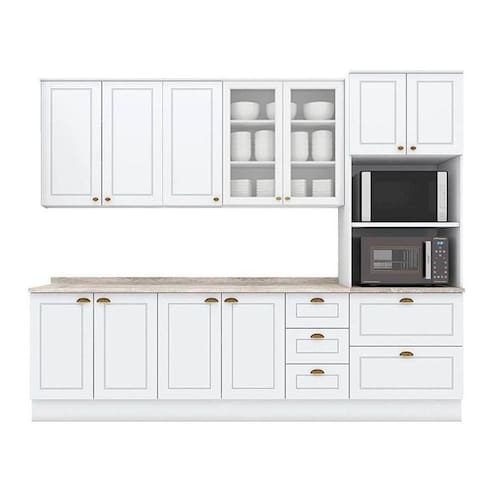 Cozinha Completa Americana 7 Peças (2 Armários + 1 Paneleiro + 2 Balcões + 2 Complementos) C5P49 Branco - Henn