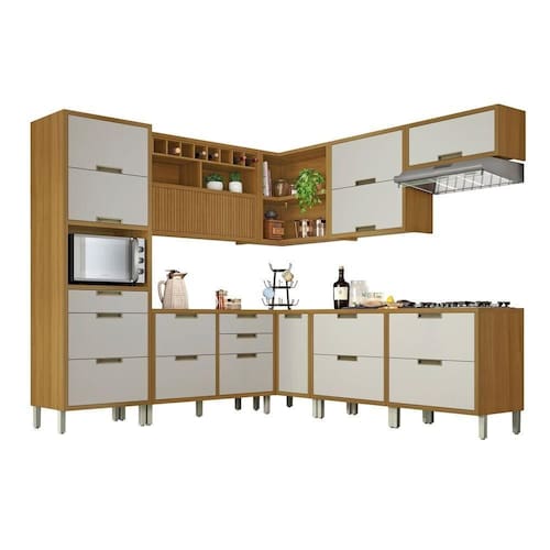 Cozinha Completa ângulo 9 Peças Imperatriz Nesher Freijó/off White