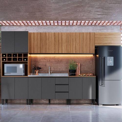 O(a) Cozinha Completa Araucária 14 Portas 3 Gavetas Montana/Grafite - Quiditá Móveis é produzido em MDP na escala de brilho Semi-Brilho, e possui um grau de dificuldade de montagem: Médio.