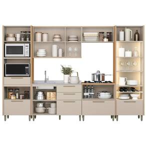 Cozinha Completa Atena 6 Peças (2Aéreos+2Balcões+1Cristaleira+1TorreQuente) CP04 Jequitiba/Off White Fosco - Linea Brasil Abaixo segue os produtos que compoem o KIT: