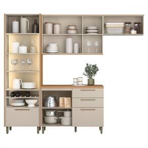 O(a) Cozinha Completa Atena 8 Portas 4 Gavetas 100% Mdf com Vidro Jequitibá/Off White - Linea Brasil é produzido em 100% MDF na escala de brilho Impressão UV, e possui um grau de dificuldade de montagem: Médio.
