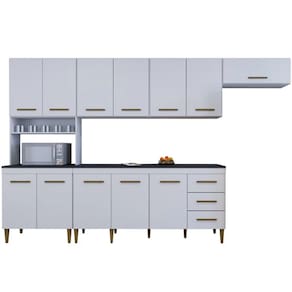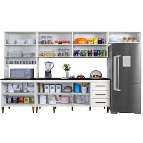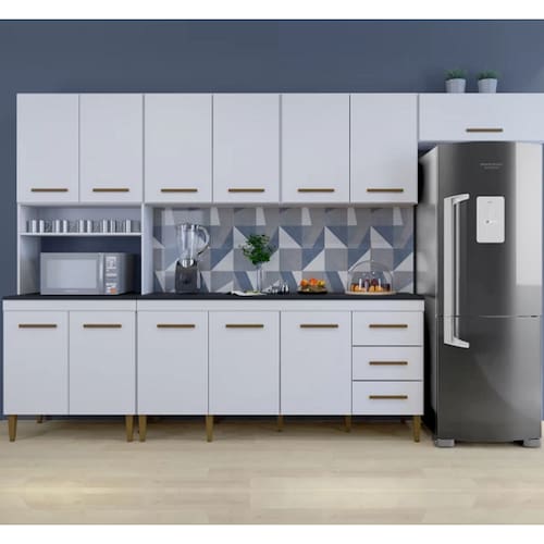 Cozinha Completa Atenas 12 Portas 3 Gavetas Kaiki Móveis Na hora de imobiliar o seu cômodo de chef você não precisa comprometer a decoração para ter um móvel funcional e que acomode todos aqueles itens essenciais. A Cozinha Atenas não só está preparada para deixar o cômodo com um visual incrível, mas também vai ser a aliada perfeita para armazenar louças, utensílios, alimentos e eletrodomésticos de forma funcional. Já por fora, a peça tem acabamento charmoso com puxadores discretos que ajuda a trazer um toque especial ao ambiente, enquanto as cores versáteis agregam muito à estética dessa peça primorosa. Muito bom gosto para o seu lar-style!