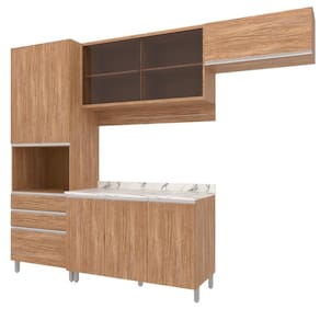 Cozinha Completa Bartira Amazonita com Balcão Cor Damasco, perfeita para quem precisa de