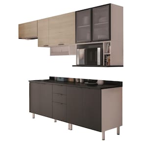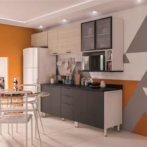 E quem se preocupa com a estética poderá ficar tranquilo, porque as peças também dispõem de nichos para objetos de decoração e acessórios, puxadores em alumínio discretos e resistentes, duas portas de vidro, suporte para pendurar utensílios e uma coloração incrível que ajuda a trazer mais aconchego, sofisticação e elegância para o ambiente.