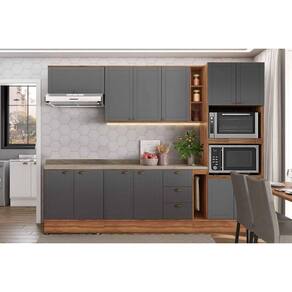 Cozinha Completa Bella 8 Peças (2Aéreos+2Balcões+1TorreQuente+3Complementos) C8P28 Nogal/Cinza - Carraro