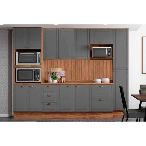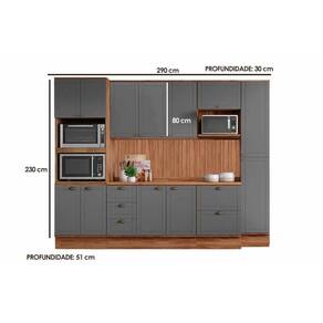 Cozinha Completa Bella 9 Peças (2Aéreos+2Balcões+1Paneleiro+1TorreQuente+3Complementos) C9P24 Nogal/Cinza - Carraro