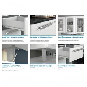 A Cozinha Itatiaia Luce é perfeita para você que procura organizar o seu ambiente e aproveitar bem o seu espaço, mantendo o design clássico, que nunca sai de moda. Conta com 3 portas de vidro e puxadores metalizados, garantindo beleza e resistência. Gavetas com corrediças telescópicas, que garante uma abertura e fechamento suave e . Tampo resistente a altas temperaturas (até 180?C) com alto brilho e textura de granito ônix. Prateleiras muito bem-distribuídas para caber louças, utensílios e panelas. Pintura eletrostática a pó, que proporciona durabilidade e resistência.