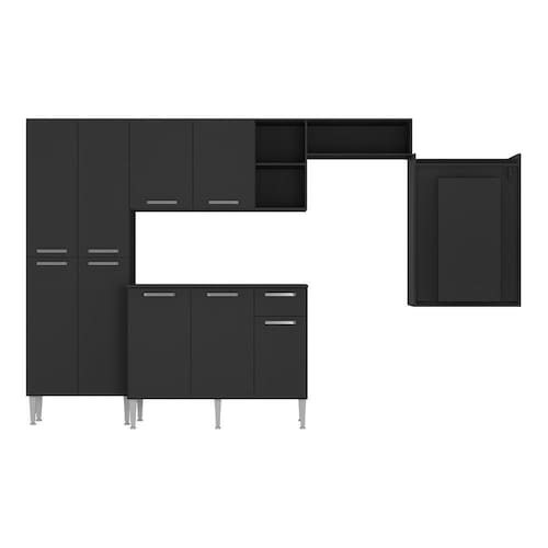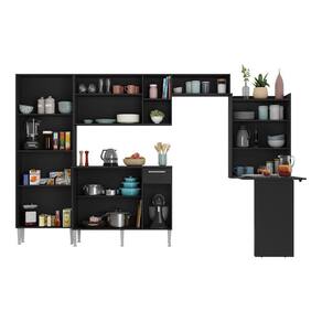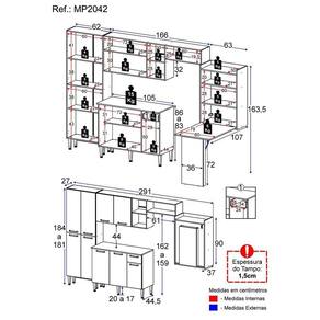 Produto Composto Por: 1 Armário Aéreo Com Nicho Horizontal de 166 Cm, 1 Paneleiro Duplo, 1 Balcão Com Tampo de 105 Cm, 1 Mesa Dobrável, Manual de Montagem E. Kit Ferragem.