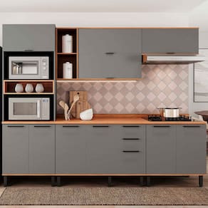 O(a) Cozinha Completa Castanha 11 Portas 2 Gavetas 915443 Cinza/Freijó - Telasul é produzido em MDP na escala de brilho Semi-Brilho, e possui um grau de dificuldade de montagem: Médio.