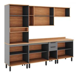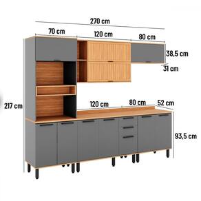 O(a) Cozinha Completa Castanha 11 Portas 2 Gavetas Ripado Cinza/Freijó - Telasul é produzido em MDP na escala de brilho Semi-Brilho, e possui um grau de dificuldade de montagem: Médio.