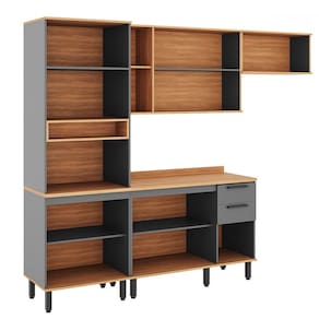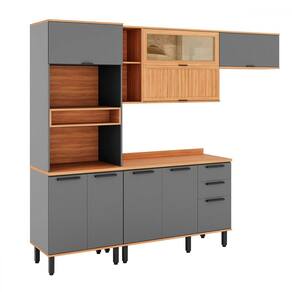 O(a) Cozinha Completa Castanha 9 Poras 2 Gavetas com Vidro Cinza/Freijó - Telasul é produzido em MDP na escala de brilho Semi-Brilho, e possui um grau de dificuldade de montagem: Médio.