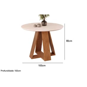Mesa de Sala Jantar Celeste c/ Tampo Madeirado Vidro Redondo 103x103cm Cedro/Off White - DJ Móveis