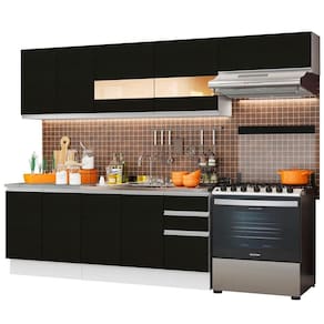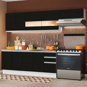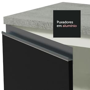 Outro grande diferencial desta cozinha é a profundidade maior, como uma cozinha planejada: 52 cm nos balcões inferiores e 31 cm nos aéreos. As medidas totais da Cozinha Madesa Marcela são: 280 cm de largura e 225 cm de altura.