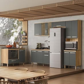Apresentamos o Armário de Cozinha Fit, um modelo elegante e espaçoso para a sua cozinha. Os armários oferecem amplo espaço de armazenamento para utensílios e mantimentos, mantendo sua cozinha organizada e funcional. Com design moderno e funcionalidade excepcional, esta cozinha é a escolha ideal para quem busca praticidade e elegância.
