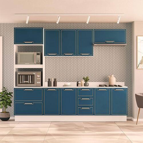 Cozinha Completa com Tampo e Rodapé Amara 10 Portas 4 Gavetas Azul e Branca - Azul Doce