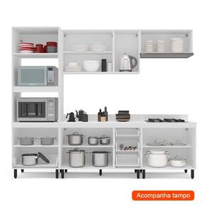 Que tal a Cozinha Completa Meena? Seu cômodo de chef precisa de ótimos espaços e, claro, de móveis bonitos que deixem o espaço acolhedor, né? Por isso que a Cozinha Completa Meena une design clean e charmoso com a usabilidade ideal: ela tem todos os compartimentos necessários para que sua rotina fique mais prática. Por falar em praticidade, as gavetas contam com corrediças telescópicas, que abrem mais e melhor. Ah, esse modelo já acompanha tampo fechado, então você ainda ganha um belo apoio na hora de preparar suas receitas ;)